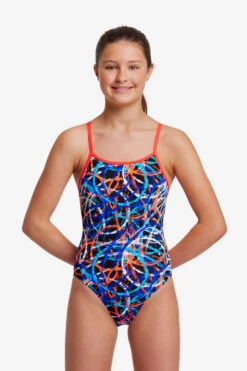 With fabric panels across the back I’ll make you feel secure and supported throughout your session.My single bind shoulder straps provide you with freedom of movement and comfort while swimming.I’ll provide you with a modest rear coverage to keep you covered while swimming along.I’ve got additional front lining and superior construction to be your perfect training companion for years to come. I’m made with all the care and love in production that makes me proud to be Funkita.Made from our exclusive C-Infinity fabric, a 100% Italian polyester that is a colourful breakthrough in chlorine resistant fabric technology! The superior choice for swimmers, C-Infinity has exceptional strength and can retain its durability far beyond other elastane swimwear fabrics.Ideal for frequent pool use for recreational and performance-based swimming.