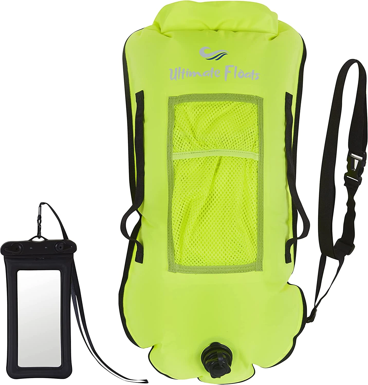 PACKED WITH SAFETY FEATURES – Two air chambers to keep buoyancy, in case one is punctured. – Whistle incorporated into the clip to attract attention. – Two webbing handles to hold onto securely if you need a break or get cramp etc. – Waterproof phone case to keep your phone dry, and a place to store your ‘In Case Of Emergency’ contact information.